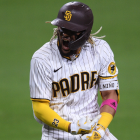 Veteran Wil Myers got in on the homer fun when he led off the seventh inning with a solo blast to give San Diego its first lead of the series, at 7-6. Four batters later with Tatis back at the plate, the 21-year-old wunderkind slammed his second home run of the game, a two-run shot to extend the lead to 9-7. He enjoyed the moment with an emphatic bat flip.