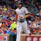 Tonight: Stanton homered off Grilli and celebrated #Rangers #Marlins pic.twitter.com/ABAHZ1GzHQ