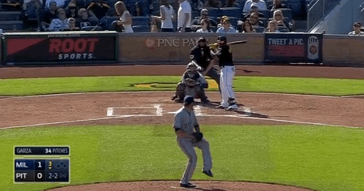 Now here he is flying out against Matt Garza of the Brewers on June 7 of this year ...