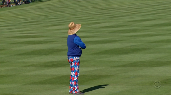 Noted Cubs fan Bill Murray is wearing a pair of Cubs pants at the AT&T Pro Am PGA Tour event Saturday.