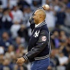 After having his number retired Sunday, Derek Jeter threw out the first pitch at Yankee Stadium