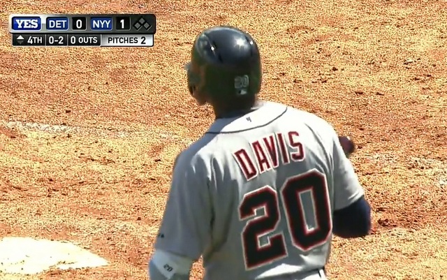 So, instead of playing the game with his usual "DAVIS 20" jersey, Davis is wearing bench coach Gene Lamont's jersey for this afternoon's game. Lamont wears No. 22. Here's photo evidence: