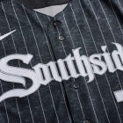 The jerseys are black with white stripes and say "Southside" on the front, which, according to MLB, represents the "mentality and a culture shared by many who love the White Sox." The pants in the uniform are also black with white stripes.