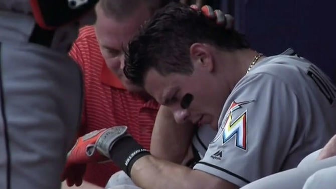 It appears Dietrich is ok, but will know shortly after game. Obviously, scary moment. Ozuna also homered in 9th. #Marlins on verge of win