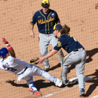 First, know that Baez was called out upon review, as Josh Hader's tag appeared to nick him at the last instant. Second, know that that's not the point. Baez's sliding chops turned what should've been a routine putout into a safe call by the first-base ump. Note that he goes from full sprint to point guard-level hesi to a foot-first attack of the first base bag, and for his efforts he almost pulled off a minor baseball miracle. The lidless eye of the camera said he was out, but the People of Baseball say he was safe.