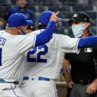 Singer was then tossed one batter later when acting manager Pedro Grifol headed to the mound to remove the pitcher. On his way off the field, Singer began jawing at Hernandez o