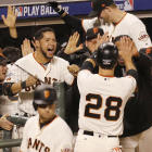 The Cubs rallied to tie the game in the ninth inning thanks to Kris Bryant's two-run home run off a cartoon car in left field, which sent the game to extra innings. Both teams had numerous opportunities to take the lead in the extras, which usually happens, but it wasn't until the 13th inning that the Giants got The Big Hit.