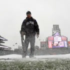 As Bob Nightengale recounted in his game story, the Rockies had already postponed three games that April, and didn't want to do it again. So a phalanx of volunteers shoveled snow to end the pre-game delay get the field sort of ready, with Rockies general manager Dan O'Dowd among those on scoop patrol. By the time the game started, there were about 300 people left in the stands. The Rockies went on to lose a 4-3 nail-biter, though the 2:37 run time was about as fast a game as you'll ever see at Coors.