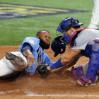 World Series: Rays' Manuel Margot thrown out trying to steal home vs. Dodgers' Clayton Kershaw in Game 5