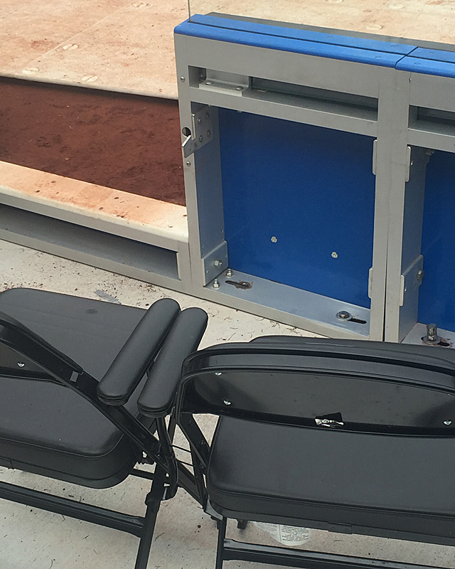 A look across to the first-base side counterpart here gives a good glimpse at where the seats have been added in front of the bricks. Or we could get even closer if we stay on our side.