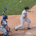 With runners on the corners and one out in the ninth inning, and light hitting backup catcher Erik Kratz at the plate, current New York Mets reliever (former Yankee) Dellin Betances uncorked a walk-off wild pitch to the backstop to end his former team's seven-game losing streak (NYY 2, NYM 1).