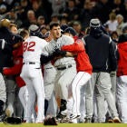 Wednesday night, a baseball game broke out during fight night between the Boston Red Sox and New York Yankees (NYY 10, BOS 7). Benches cleared and punches were thrown after BoSox reliever Joe Kelly threw at Yankees first baseman Tyler Austin in retaliation for a spikes-high slide earlier in the game. Austin charged the mound and away they went.