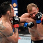 Cerrone appeared to get the nod in a very competitive opening round in which he was active with his jab and largely prevented the unorthodox Ferguson to get into a steady flow. But the second round saw Ferguson step up his output and begin to visually slow down and hurt Cerrone with a number of creative strikes to cause bleeding and swelling to his face.