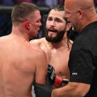Things then turned serious, as Masvidal would floor Diaz with a kick-punch combination near the middle of Round 1 that would eventually open up the floodgates of damage. Masvidal brutalized Diaz throughout with various strikes, though Diaz, the consummate badass in his own right, kept firing back. The problem was, however, Masvidal had an answer for everything thrown his way by Diaz, eventually leading to the TKO finish.