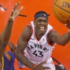 TORONTO -- Pascal Siakam brought the ball past half court, sizing up the Golden State Warriors' defense. The shoo-in for Most Improved Player ran a pick-and-roll with guard Kyle Lowry, forcing a switch. Siakam backed Shaun Livingston down, drew a double team and passed the ball out to Lowry, who immediately gave it back to him. A quick jab step followed, and he attacked the rim with one hard, purposeful dribble. He flipped a tough shot over DeMarcus Cousins's outstretched arms, and it went off the glass and in.