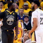 Green was a nightmare for the Pelicans on Tuesday, scoring 20 points, notching 12 assists and coming up a rebound shy of his second straight triple-double. More than that, he had the crowd at Oracle losing its mind, taunting the Pelicans' bench every chance he got and generally being a nuisance. One of the more controversial moments of the night came on a double foul when he dragged Anthony Davis to the ground and the two got tangled up.