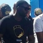 There was the "Quickie" shirt parodying Quicken Loans Arena -- home of the Cavaliers -- during last year's parade. When the two teams matched up on Christmas Day this season he wore custom Arthur the aardvark shoes trolling LeBron for his social media post. And now, during this year's championship parade, he's once again brought out a shirt to make fun of LeBron.