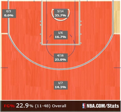 There were some other wacky stats here: Gary Neal had 23 points off the bench for Charlotte, the Hawks' Jeff Teague dropped a cool 22 points and 15 assists, and Al Horford scored 24 points on 11-for-16 shooting because that's the kind of thing that he does.