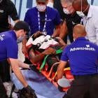 He immediately fell hard to the ground and started holding his neck. He was on the ground for several minutes afterward. A stretcher came out shortly to get him off of the floor, and a collar was placed on Jones' neck for support. Fortunately, the diagnosis is not nearly as bad as it could have been. Jones has a strained neck, according to The Athletic's Shams Charania, and will be re-evaluated over the weekend.