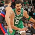 But for me, right now, Jayson Tatum has taken pole position. He's just too much right now. Over a 24-hour span, Tatum just blitzed Denver and Detroit for 77 points, 18 rebounds and eight assists on a back-to-back -- the latter of which saw him go for 43 and 10 boards in a win against the Pistons on Saturday. He did it from everywhere on the court.