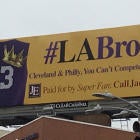 The billboards take direct shots at Philadelphia and Cleveland, including slogans like "Forget the process, we win banners!" and "Cleveland & Philly, you can't compete with L.A." They were purchased by attorney and self-proclaimed Lakers "super fan," Jacob Emrani.