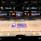 The Finals logo and the Larry O'Brien trophy have been added to the court design