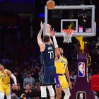 The Lakers had been blitzing Doncic for much of the second half. It put the kibosh on his scoring. He hadn't registered a bucket since the 5:22 mark of the third quarter, over a 17-minute drought. There's a poisonous rub to that strategy, of course. Commit a double team to Doncic, and you're leaving a shooter open. Nobody finds shooters like Luka.