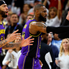 The Lakers then forced a stop on a Mike Conley missed 3-pointer, and James scampered down the floor to try to tie the game in transition. He put up a jumper with mere seconds on the clock and... swish! Tie game, 107 apiece with 2.1 left on the clock. Or so we thought.