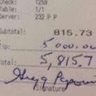 The receipt from McEwen's on Monroe, originally uploaded to Reddit, appears to show that Pop left a $5,000 tip on a bill of $815.73 -- for those of you trying to do the math, that's a 613 percent tip.