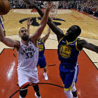 But it wasn't just Siakam. The Raptors looked to push whenever possible -- capitalizing on 17 Golden State turnovers and 44 missed shots -- even when the Warriors appeared to have defenders in position to stop them. As a result they kept the Golden State defense on its heels and forced scrambling situations that led to missed rotations and wide-open shots. Sounds familiar, doesn't it? It's exactly what the Warriors offense is predicated upon. This time around, the Raptors beat them at their own game.