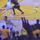 Stephen Curry got in on action, celebrating a corner 3-pointer while it was in midair, which has become one of his signature moves. Unfortunately for Curry, the ball didn't actually go in.