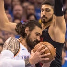 This is why Steven Adams was voted the toughest player in the NBA in the annual general manager survey before the season started. As the Thunder looked to tie their series at two-all, Adams pulled off the highlight of the first half with this slam dunk.