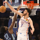 He also just has great instincts of knowing when to help in the paint, even when he gets switched onto a smaller defender to pull him away from the basket. That's exactly what the Grizzlies tried to do on this possession, as Jaren Jackson Jr. was posting up the smaller Josh Giddey, but when Vince Williams tried to drive toward the hoop, Holmgren met him at the top and made easy work with a clean block: