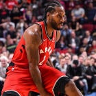 It wasn't exactly the most exciting bucket he'll ever score for the Raptors, but Kawhi Leonard is on the board. Out on the fast break, Kyle Lowry made a point to get his new star the ball, and Leonard converted an awkward finish in traffic. Leonard finished with 24 points and 12 rebounds in the Raptors' win over the Cavs.