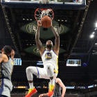 Klay Thompson had a four-dunk game the other night, and apparently that's turned him into a dunking machine. Check out this huge slam against the Pacers and stick around for Stephen Curry's reaction.