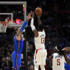 Late Monday night, he kept up his strong start by saving the day with a game-winning 3-pointer to lift the Clippers over the Oklahoma City Thunder. He wasn't as spectacular as he was in his first two games, but he came up big when it mattered to get the Clippers a 90-88 win to improve their record to 9-5 on the season. In 29 minutes, he went 7-of-14 from the field for 18 points, grabbed seven rebounds and dished out four assists, though he also turned the ball over seven times. No one will remember the latter mark, however, thanks to his heroics in the closing seconds.
