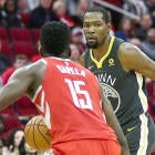 The good news for the Rockets is they do have multiple defenders who can at least reasonably challenge Durant -- Ariza, Tucker and Luc Mbah Moute, namely. The bad news is the Warriors, unlike the Rockets, move the heck out of the ball, and their players cut and move like crazy, too, so it's not as easy to stay attached to their shooters as it is for the Warriors to stay attached to the Rockets' shooters -- who, again, hardly move. The Warriors are a far more versatile offense than Houston, so there isn't one action you can key on and try to shut down. That said, there is a game-plan here to simply let Durant cook from two in an effort to keep track of Thompson and Curry as they maneuver through their maze of screens.