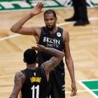 Irving said he was going to let his play do the talking this season, and so far he's being heard loud and clear. Irving led the way as Brooklyn turned a halftime deficit into a blowout in Boston with 20 of his game-high 37 points in the second half, including 11 in the fourth quarter to put the nail in the coffin. He shot 13-of-21 including 7-for-10 from three and 4-for-4 from the line. He added eight assists and six rebounds for good measure. He was brilliantly efficient, scoring almost entirely from either behind the arc or in the paint as he and Kevin Durant played my-turn-your-turn to perfection.