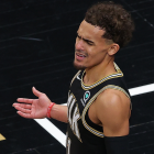 Young has already turned into a villain among Knicks fans for his performance in this series. After hitting the game-winning shot in Game 1, Young put a finger to his mouth and shushed the raucous Madison Square Garden crowd. But in this case, he's trying to avoid further controversy. He's one game away from his first series victory, and hopefully, no on-court feuds between him and the Knicks are going to get in the way of that.