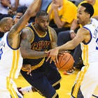 The Warriors' bench picked up the slack for the misfiring All-NBA backcourt, outscoring the Cavs' bench 45-10 behind 20 points from Shaun Livingston and 12 points, seven assists, and six rebounds from Andre Iguodala. That advantage plus the poor game from Kyrie Irving (26 points on 7-of-22 shooting) turned this one into a laugher late. But most of the game, we saw the Cavs trying to figure out the pace and tempo with which they could attack the Warriors.