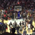 Also, for some reason they weren't using the clock on the shot clock or the court, so the PA announcer is having to count down from 10 seconds when the time is almost up.