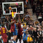 That's just insane athleticism, the kind we've come to expect from James, and a big play to help the Cavaliers close an 11-point deficit to just two. Every time the Warriors started to get separation, James made a play to get it back under control.