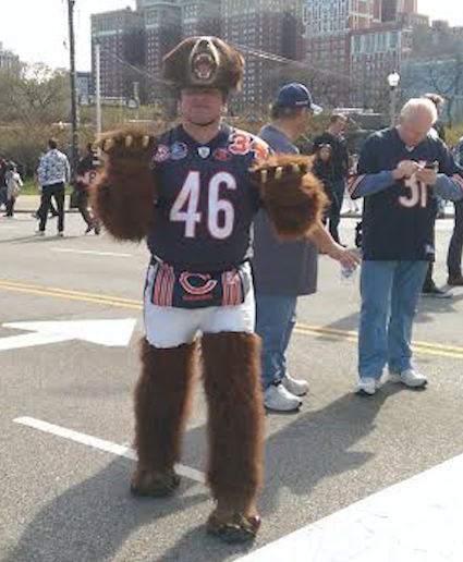 4. Hand warmer Bears Fan: Since the draft was in Chicago this year, you knew some rabid Bears fans would show up. What I didn't expect was that an actual bear would show up. This guy's bear head and hand warmer earned him a spot on the craziest fans list.