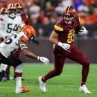 One of Kaylor's top NFL DFS picks for Monday, where every player on DraftKings is priced at $5,500 and $6,000 on FanDuel, is Commanders tight end Cole Turner. Washington is playing without starting tight end Logan Thomas, putting Turner behind John Bates on the depth chart. Turner is entering his second season after catching two passes for 23 yards last year.