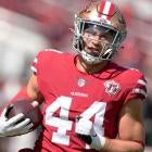 One of the NFL's best-known players at an increasingly little-used position, the 30-year-old Juszczyk inked a five-year, $27 million extension ahead of 2021 free agency. He was originally due $2.95 million in 2022, but will now be paid $3.78 million, according to ProFootballTalk. Additionally, $1.25 million of his 2023 payout ($6.58 million) is now fully guaranteed. In all, Juszczyk remains under contract with the 49ers through the 2025 season.
