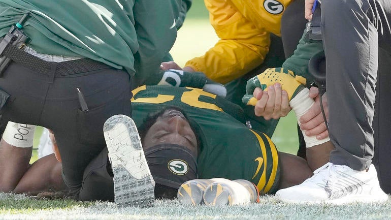 Aaron Jones had to be helped off the field after suffering a leg injury pic.twitter.com/X33Mv5j9yq