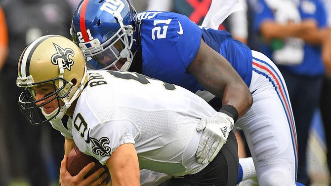 The Giants had two sacks of Brees last week, and both came by defensive backs. Collins got one and Hall got the other.