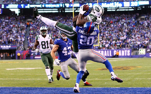 His big body made it so Amukamara had no chance. I love the way Marshall went up and plucked the ball out at its highest point.