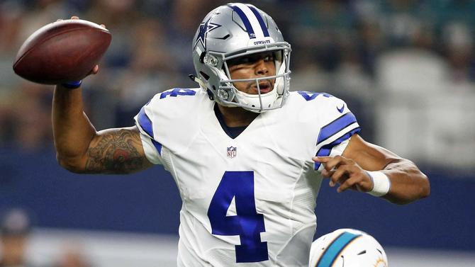 Prescott, a fourth-round pick this year, has completed 81.5 percent of his passes for a perfect 158.3 passer rating. Prescott has more touchdowns (six -- four passing, two rushing) than incompletions (five).