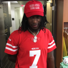 Alvin Kamara dons Colin Kaepernick jersey, 'Make Africa Home Again' hat in Saints locker room after win